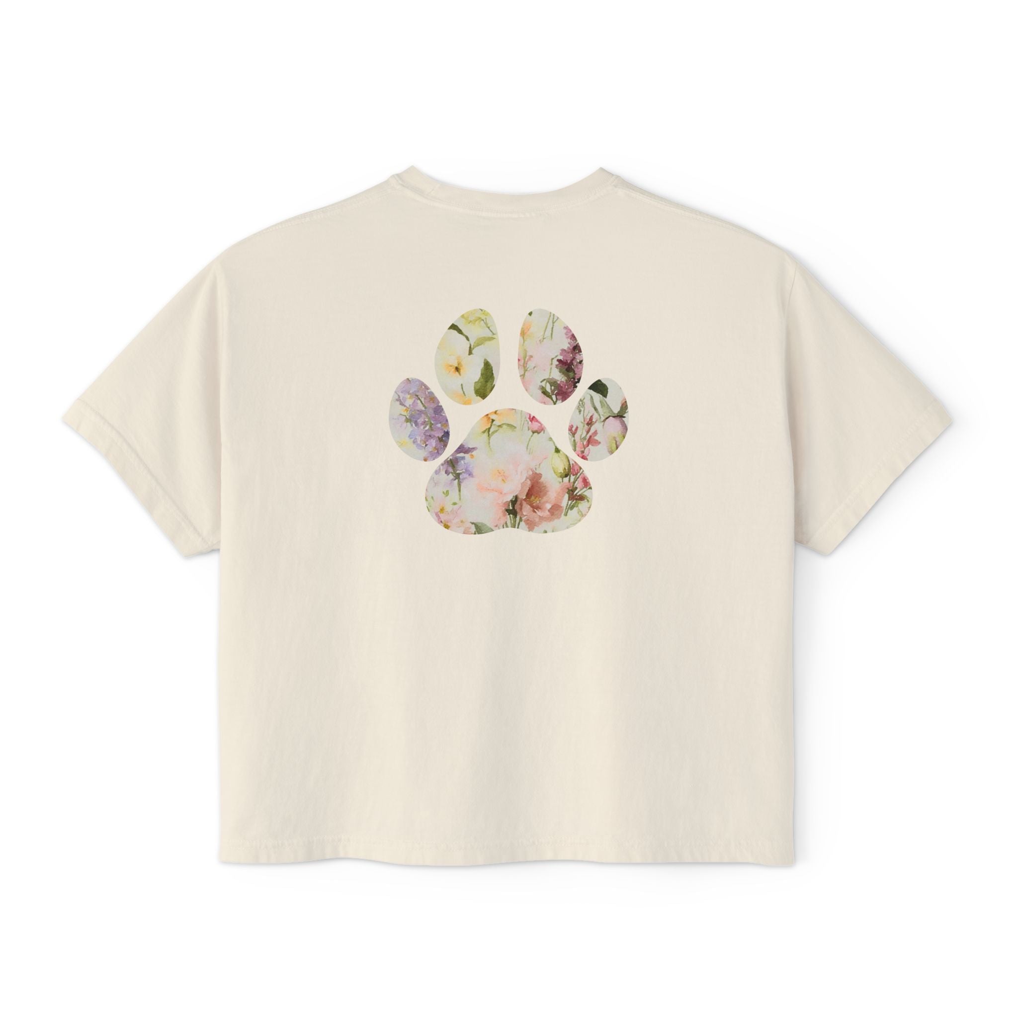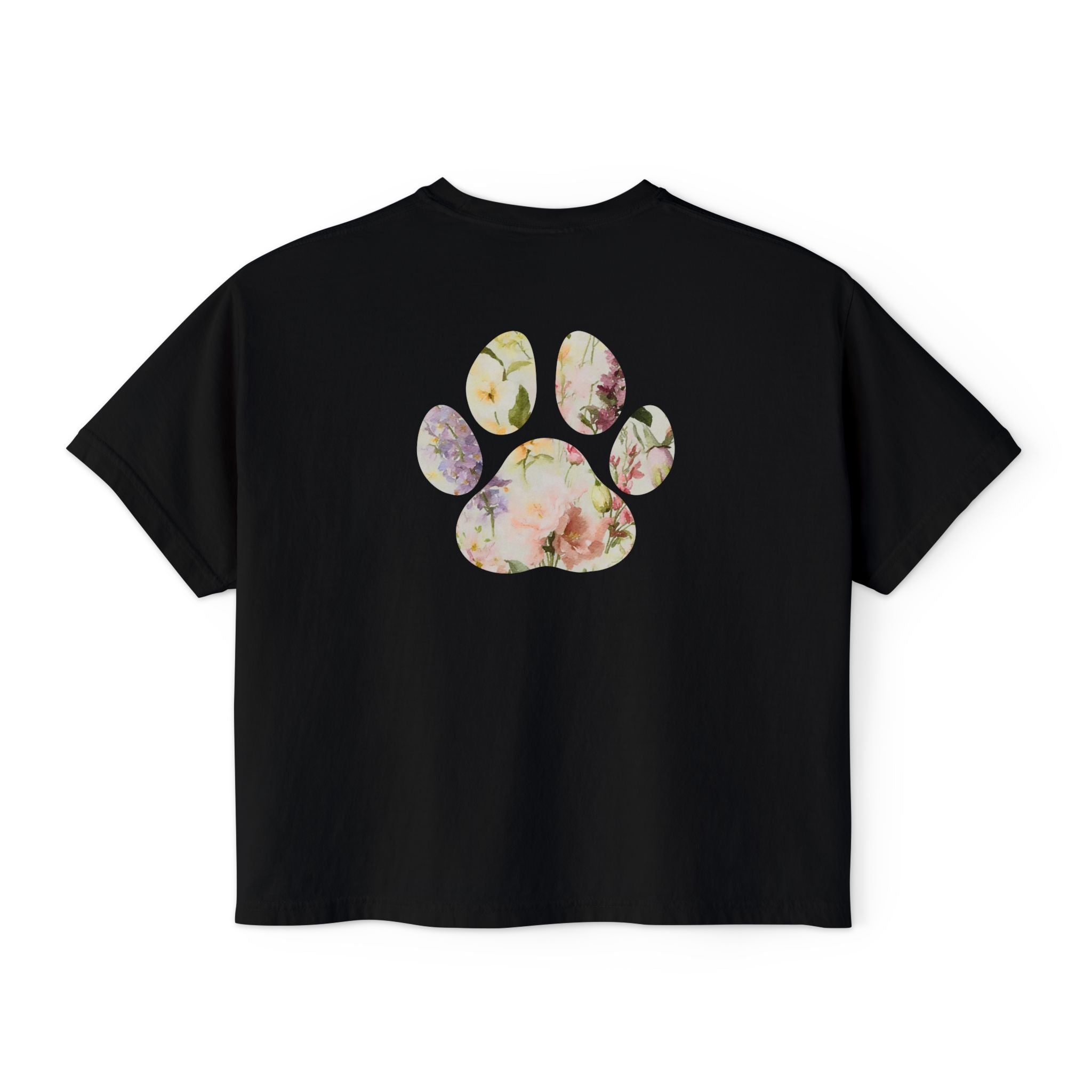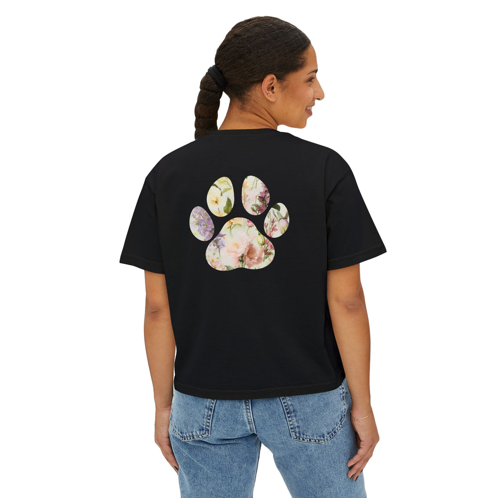 Ladies Watercolor Floral Paw Print Boxy Tee