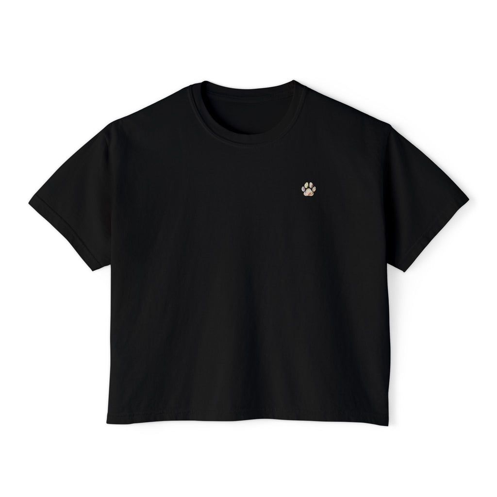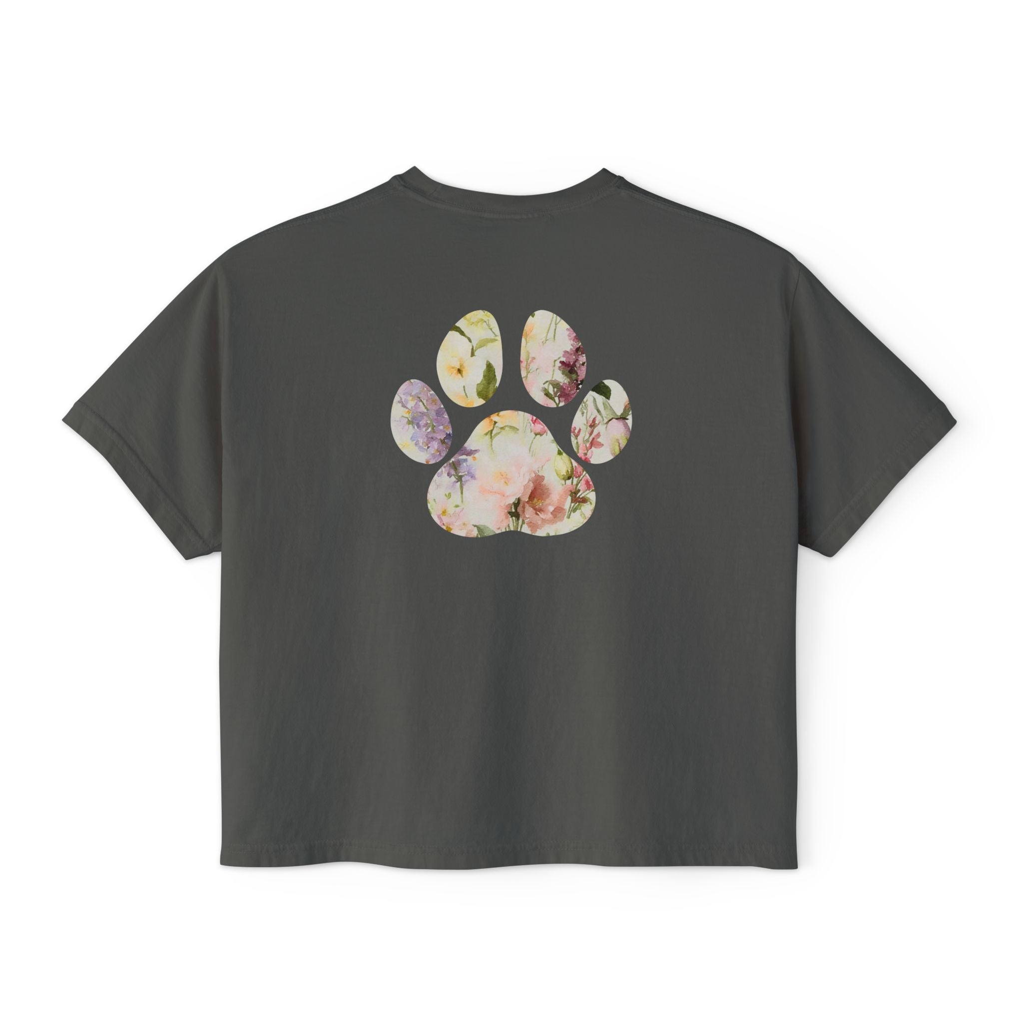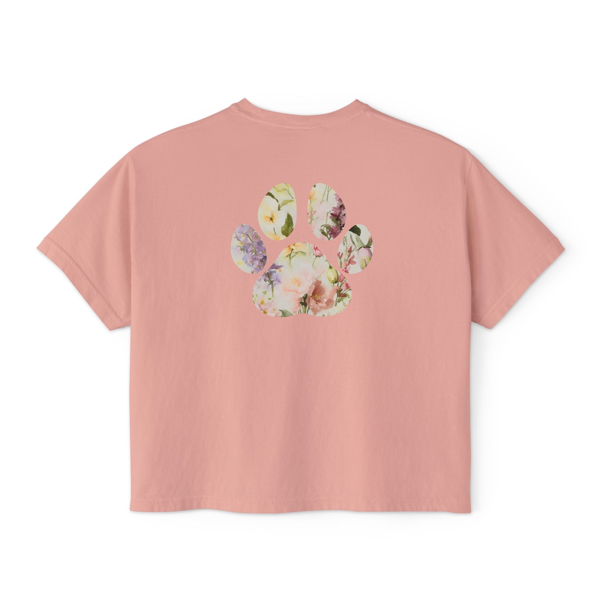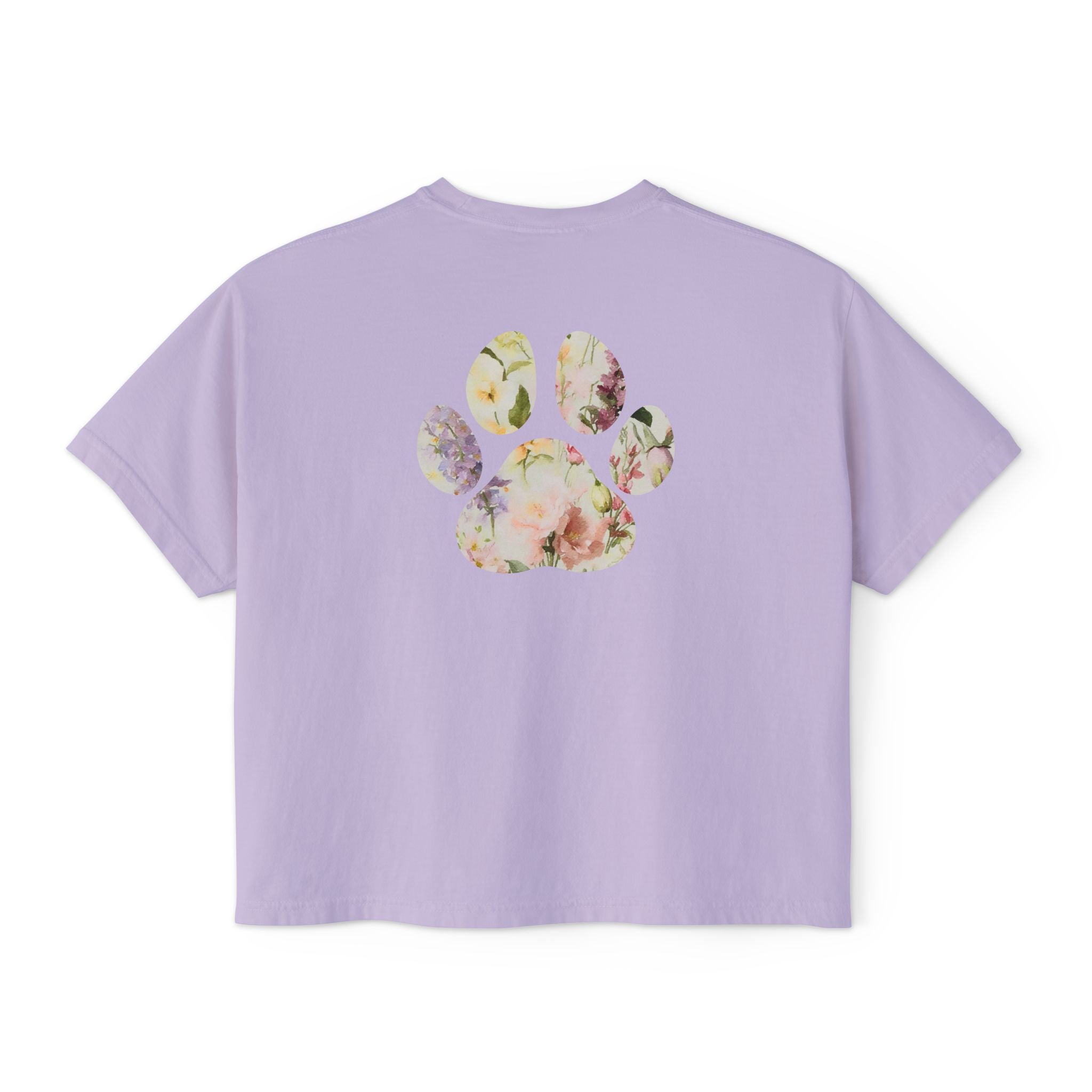 Ladies Watercolor Floral Paw Print Boxy Tee