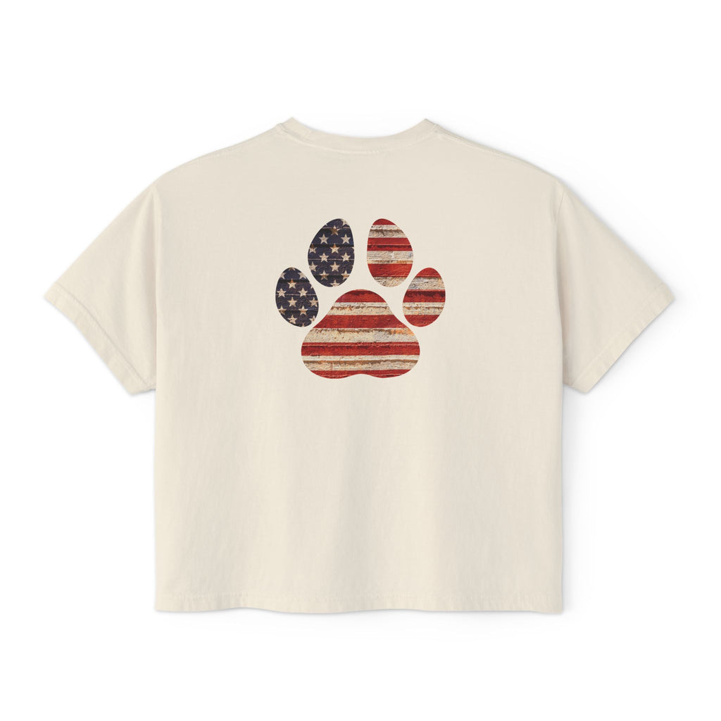 Ladies American Flag Paw Print Boxy Tee